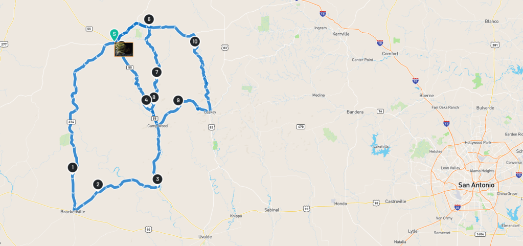 There’s something about pointing your front wheel west out of San Antonio that feels like you’re riding into a different world. The traffic thins, the land stretches, and the pavement begins to twist. The Rocksprings Double Loop, starting and ending in Rocksprings, delivers some of the best riding the Texas Hill Country has to offer.